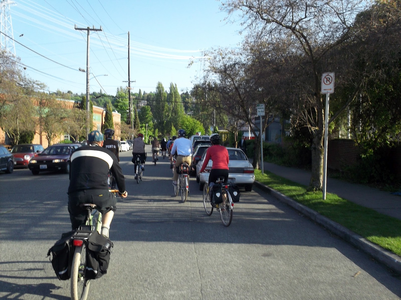 On Friday, May 12th 2012 Grant Petersen visited Seattle to talk about his book Just Ride and to just ride with a few folks. An overflow crowd more than filled Free Range Cycles and Seattle did its best to dispel the "it rains all the time" myth. I can't tell you what Grant had to say because I figured it'd be best to let the less claustrophobic and more hard core fans pack into the shop for the talk, but we all had a nice ride afterwards and I took a few pictures of some really nice bikes.
